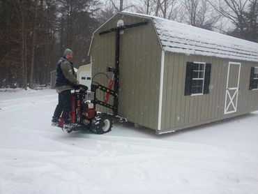 We are now able to move your shed within or out of your yard with NO Truck, Trailer or Heavy Equipment. With our newly patented Shed Mover, there is no worrying about your grass, sprinkler system, septic system, etc.. Most sheds weigh less per square inch while moving them, then walking across the yard. Call us for special fees to use the Shed Mover(Mule).